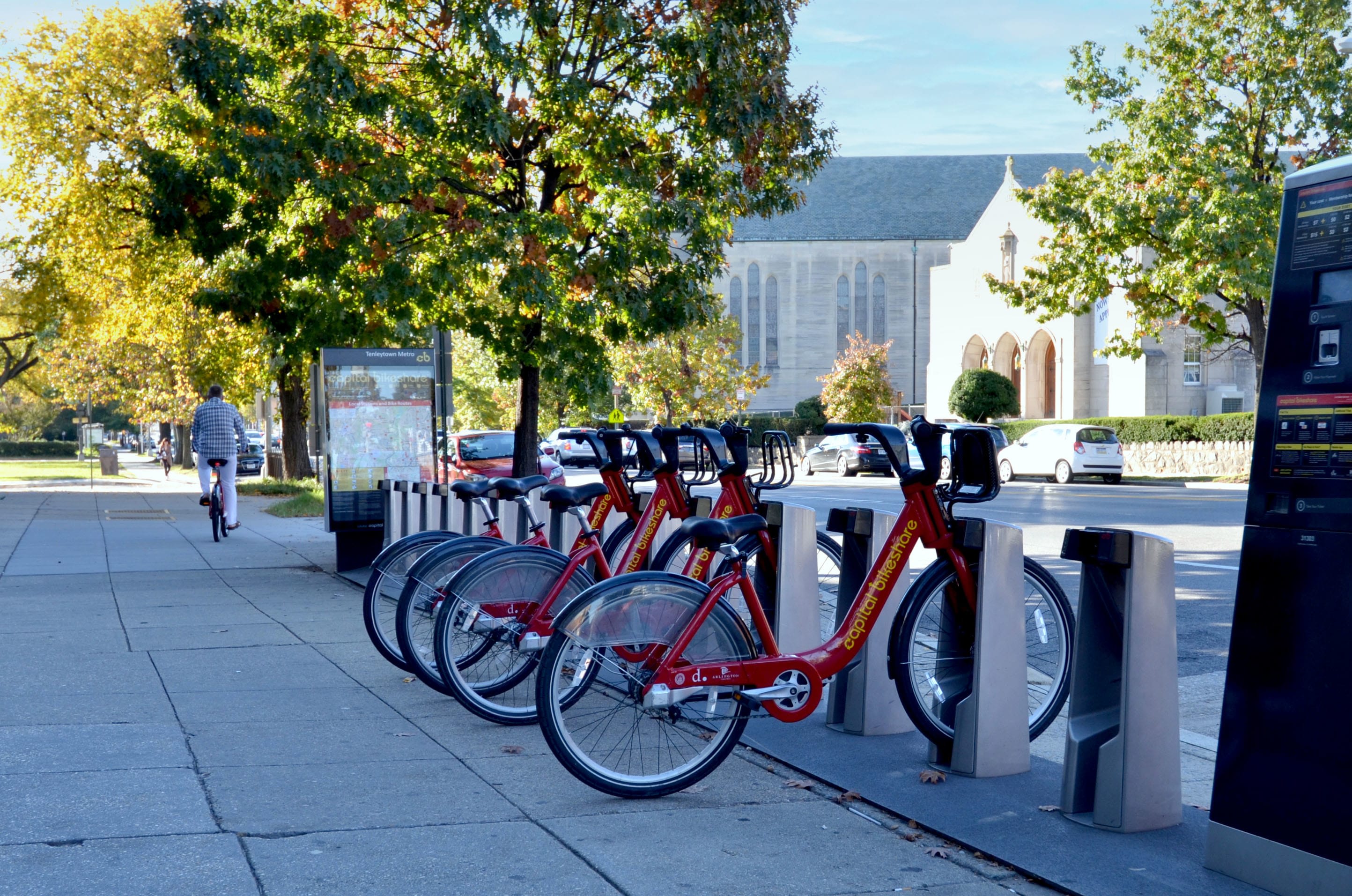 Tenleytown, DC Capital Bikeshare stand at Wisconsin Avenue NW and Albemarle Street NW.